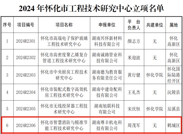 近日,從懷化市科學(xué)技術(shù)局獲悉,2024年度懷化市工程技術(shù)研究中心立項評定工作結(jié)束。經(jīng)過申報推薦、形式審查、專家評審、現(xiàn)場考察、局黨組會議審定和公示等程序,蕞終確定立項項目13項,我司申報的“懷化市智慧消防與精準(zhǔn)節(jié)能工程技術(shù)研究中心”項目位列其中。
